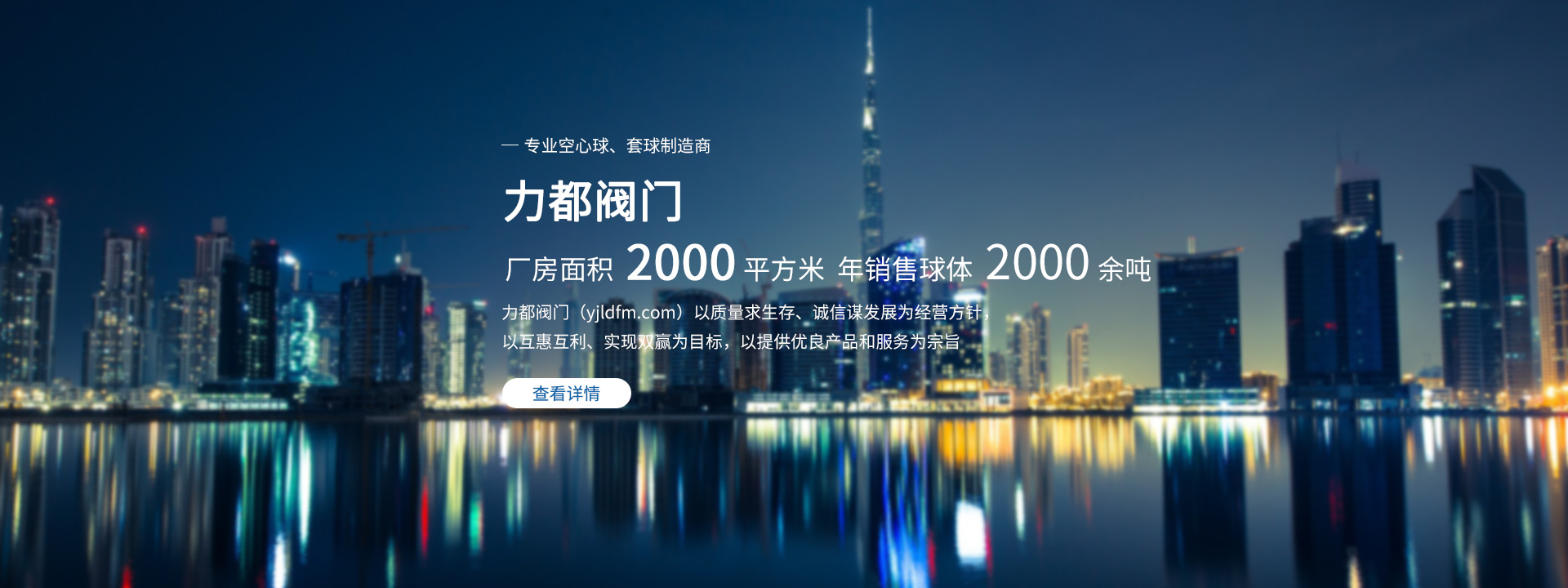 永嘉縣力都閥門有限公司位于“中國泵閥之鄉”溫州甌北,是一家專業生產空心球、套球的企業。公司創辦于2014年,廠房面積2000平方米,員工30多人,其中30%的員工具有專業職稱,公司現擁有各種設備40臺,年銷售球體2000余噸。
